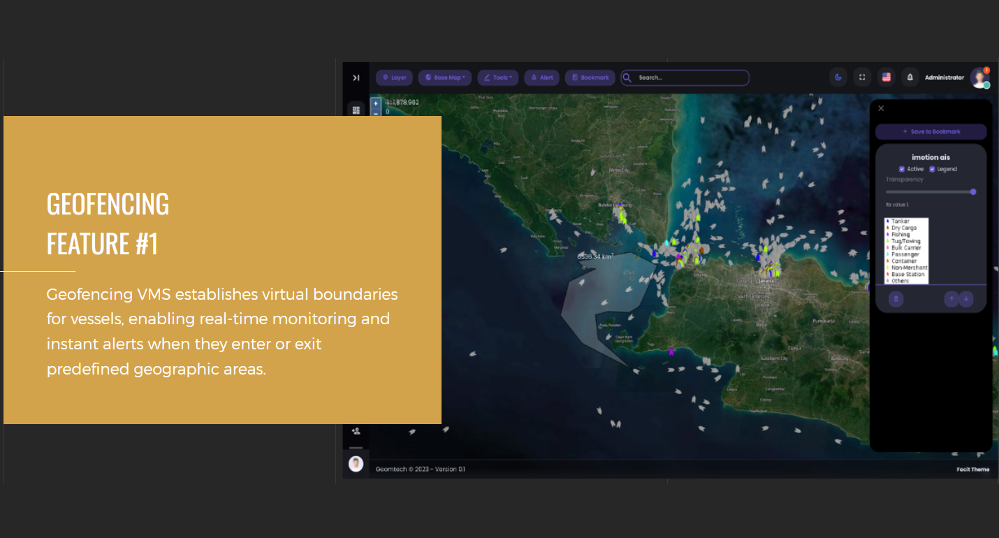Notifikasi otomatis saat Vessel keluar dari zona aman yang telah ditentukan.
